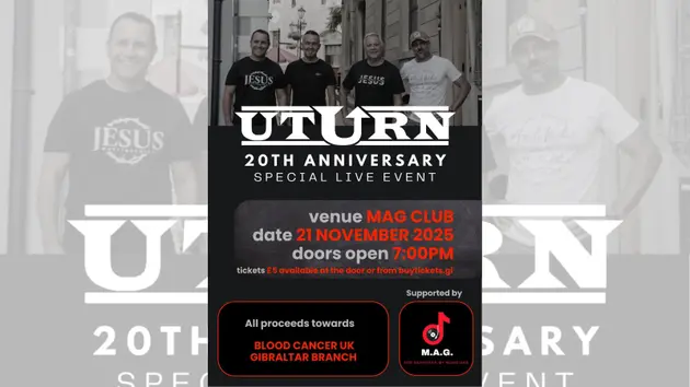 Celebrate U-Turn’s 20th Anniversary Milestone with Gibraltar’s premier Christian rock band as they rock out for a great cause. This special concert will raise funds for a Blood Cancer Charity, supporting those battling leukemia, lymphoma, and other blood cancers. This event is organized by Musicians Association Of Gibraltar.