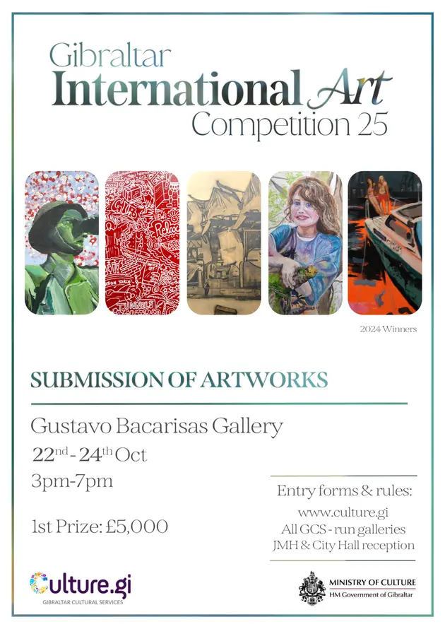 Gibraltar Cultural Services (GCS), en nombre del Ministerio de Cultura, está invitando a entradas para la 52a Competencia Internacional de Arte de Gibraltar. Las entradas se exhibirán en la Galería Gustavo Bacarisas del 5 de noviembre al 15 de noviembre de 2025.