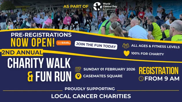 Cancer Relief Gibraltar, en colaboración con organizaciones benéficas locales contra el cáncer, organiza una vez más una carrera divertida de 5 km y una caminata familiar de 3 km para conmemorar el Día Mundial contra el Cáncer. Este evento es más que una carrera; es un esfuerzo conjunto para crear conciencia, recaudar fondos vitales y unir a nuestra comunidad para apoyar a los afectados por el cáncer. El tema de este año continúa con el tema "Unidos por lo único", mientras celebramos la fuerza en la unidad y honramos el viaje de cada individuo. Ya sea que desee caminar o correr en memoria de un ser querido o dar esos pasos, este evento familiar ofrece dos distancias (5 km y 3 km) para alentar a todos a unirse en diversión, ejercicio y comunidad. También puede comprar nuestra nueva camiseta conmemorativa exclusiva del Día Mundial contra el Cáncer 2026 y elegir qué organización benéfica contra el cáncer local le gustaría representar o donar su tarifa de inscripción, lo que hace que este evento sea verdaderamente único para todos los involucrados. Detalles del evento: domingo 1 de febrero, Casemates Square, Gibraltar Carrera de 5 km: Inscripción: 9:00 Calentamiento organizado por Puro Fuego Fitness: 9:45 Hora de inicio: 10:00 Caminata familiar de 3 km: