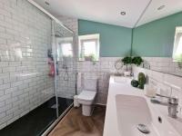 The principal suite features a luxurious en-suite bathroom, complemented by a stylish family bathroom.